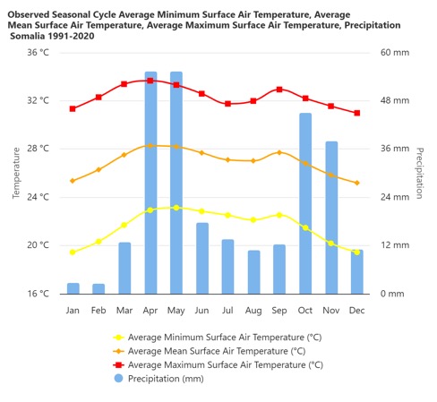 Roobabka Gu’ga ee Maarso ilaa May (MAM) waa kuwo aad muhiim ugu ah Soomaaliya, maadaama ay bixiyaan ilaa 60% roobka sanadlaha ah isla markaana taageeraan beeraha iyo xoolaha gobollo badan sida Mudug, Nugaal, Sanaag, Bari, Jubaland, Woqooyi Galbeed, Sool, iyo gobollada dhexe. Saadaasha cimiladu waxay muujinaysaa qiyaastii 40% fursad roob caadi u dhow (near-normal rainfall), iyadoo sidoo kale la filayo heerkul sare (higher temperatures) iyo roobab ka badan caadiga meelaha qaarkood (wetter conditions), taasoo kordhinaysa halista fatahaadaha (flood risk). Inkasta oo roob wanaagsan uu gacan ka geysan karo soo kabashada abaaraha iyadoo la helayo biyo iyo daaq, haddana roob xad-dhaaf ah ama si liidata loo maareeyo wuxuu keeni karaa fatahaado, barakac, iyo khasaare dhaqaale, taasoo muujinaysa baahida loo qabo maareyn dheellitiran oo biyaha ah (balanced water management).